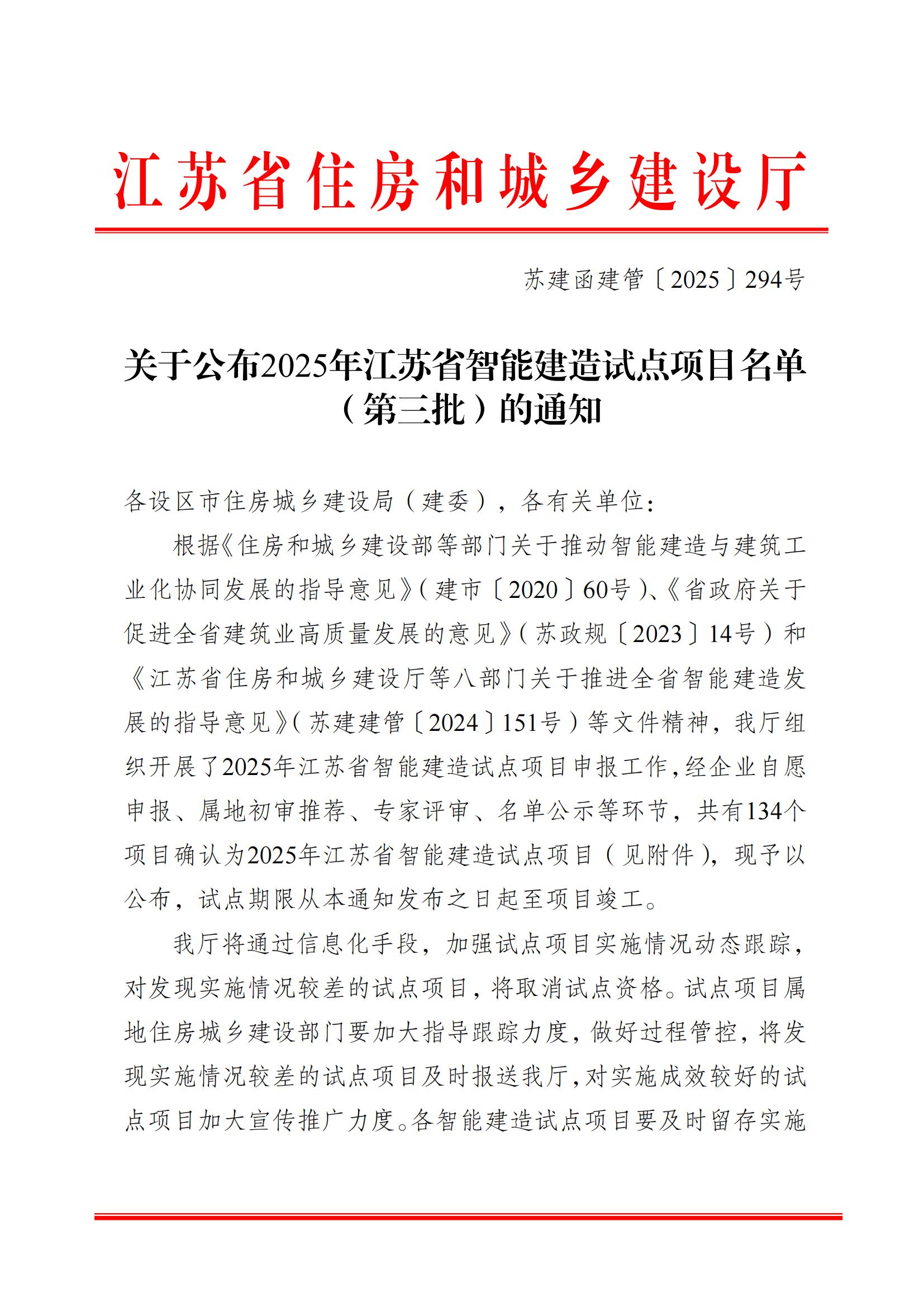 近日,江蘇省住房和城鄉(xiāng)建設廳正式公布了2025年度江蘇省智能建造試點項目名單(···